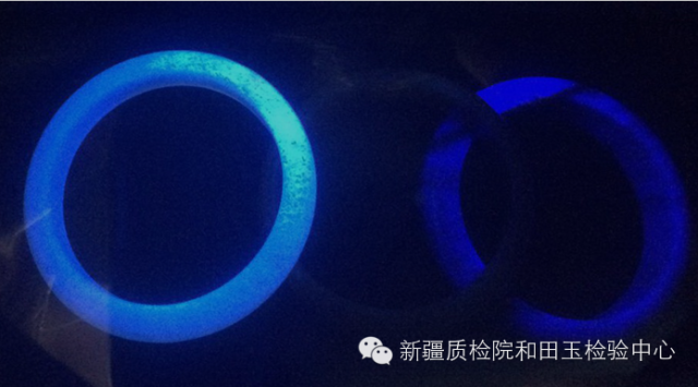 局限性:对于结构疏松充蜡的样品会具有强蓝白色荧光。对于天然的黄色、红色、橙红色的经充胶处理的样品,荧光反应为惰性。(样品中的铁元素会拟制荧光。)