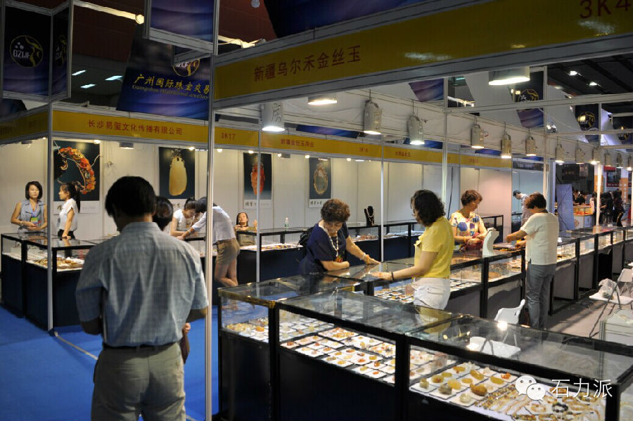 《石力派》在现场发现,本次的交易会的“团体作战现象”非常的明显。如義顺来珠宝广场就组织了华林玉器街的一系列商家进行了参展、新疆金丝玉展团亲自远道而来于现场推广金丝玉,番禺的珠宝人士组团形成了番禺彩宝馆。